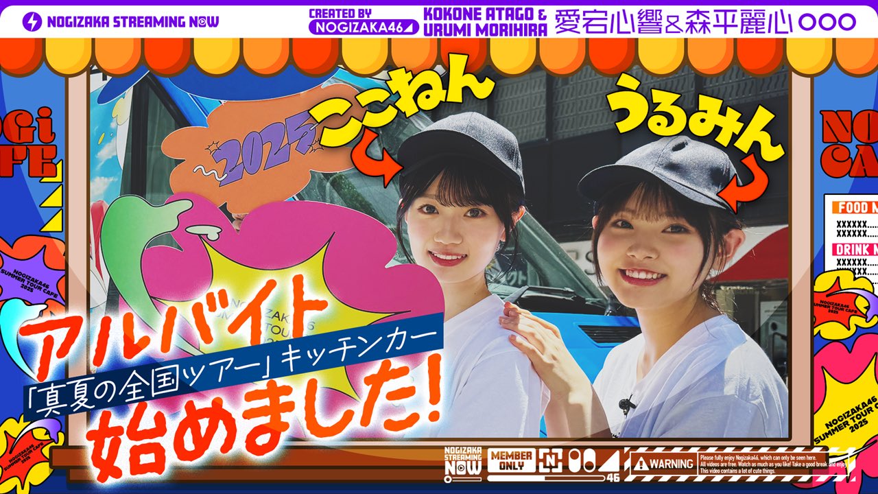「#乃木坂配信中」にて「愛宕心響と森平麗心がアルバイトに挑戦!」を公開いたしました🍽️#愛宕心響 #森平麗心 が静岡公演の翌日にNOGI CAFEキッチンカーでアルバイト体験☕️